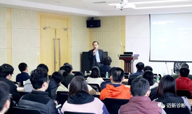 交流会现场,林教授温文尔雅,向大家介绍美国病理实验室的先进管理经验