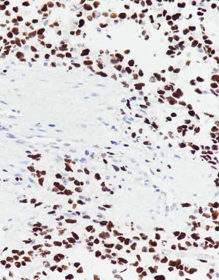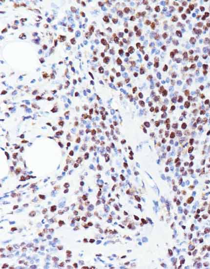 弥漫大B细胞淋巴瘤,Oct-2染色,细胞核阳性