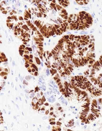 卵巢浆液性癌,Pax-2染色,细胞核阳性