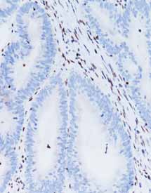 结直肠癌,PMS2染色,细胞核阳性,肿瘤细胞表达缺失