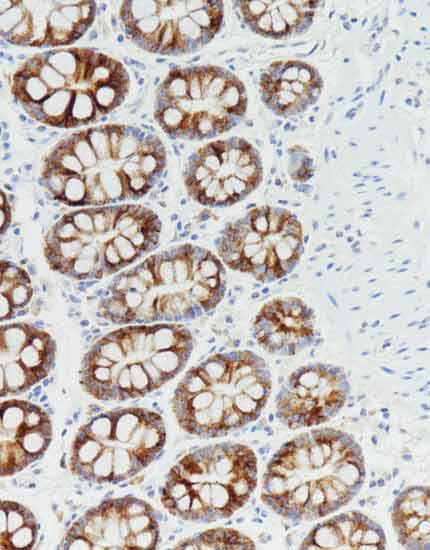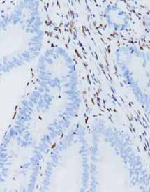 结直肠癌,MLH1染色,细胞核阳性,肿瘤细胞表达缺失