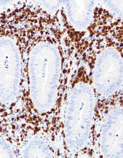 阑尾,CD3染色,胞膜阳性