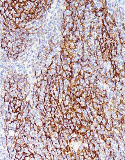 扁桃体,CD5染色,胞膜阳性