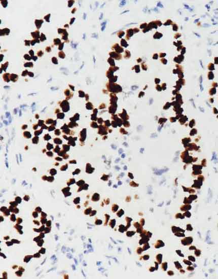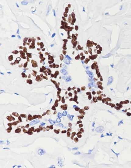 乳腺导管浸润癌,FOXA1 染色,细胞核阳性