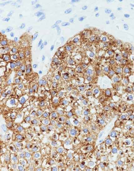 甲状旁腺瘤,PTH染色,细胞膜/细胞质阳性。