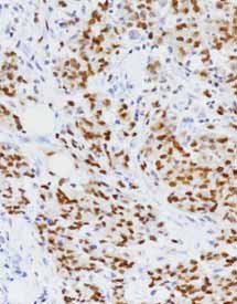肾细胞癌,TFE-3染色,细胞核阳性。